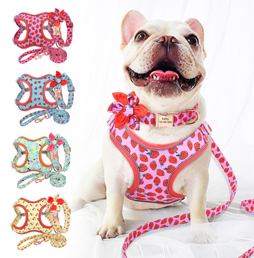 In the sea of different harness shapes we offer, you can choose between so many designs and fabrics – all according to your Frenchie’s needs. We also recommend purchasing a customizable collar so it’s easier to identify your fur baby if they ever get lost.